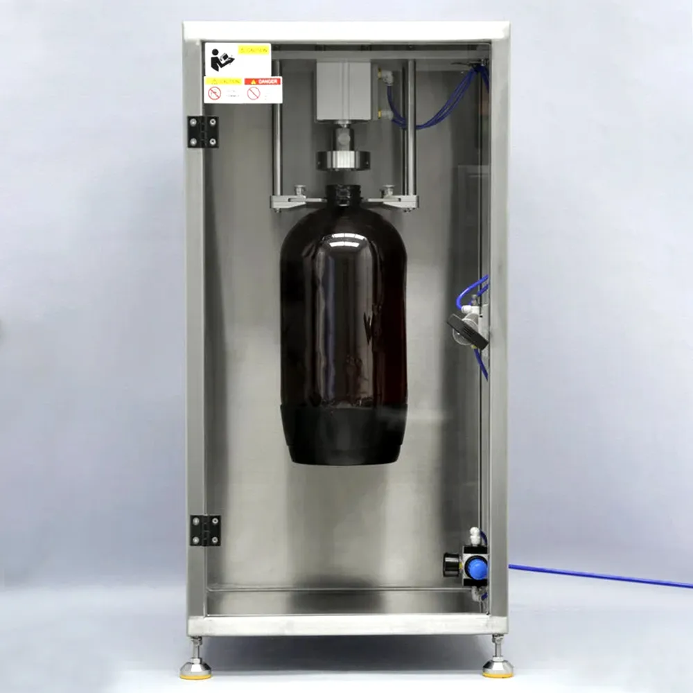 A laboratory-grade automatic capping device designed for efficient and safe capping of various bottle types. It features pneumatic control, customizable bottle spacers, and a durable stainless steel frame, ensuring consistent performance in laboratory settings.