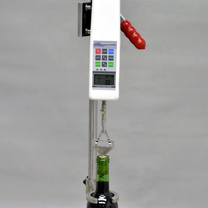 Designed for wine producers and cork manufacturers to accurately measure cork insertion and extraction forces, ensuring consistent quality and easy bottle opening. It features durable construction, user-friendly operation, and is available with digital or analog gauges.