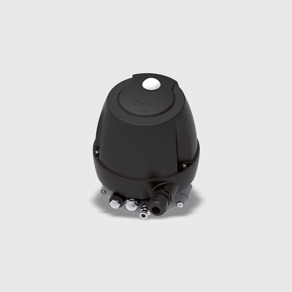 The T.VIS® M-20 is equipped with reliable and robust control electronics, containing the proven path measurement system of the T.VIS® A-15 as an on-board version. The cable connection to the central control level is implemented by the customer, either via externally accessible M12 plugs or via direct wiring to internal spring-loaded terminals, depending on the requirements. Parameters can be preset via DIP switches so that the actual commissioning no longer requires any further operation or configuration. Using an internal reset button, the electronics can be reset to delivery status after a valve service, so that a new self-learning process takes place automatically when the system is restarted. The supply air connection is equipped with a replaceable filter to protect the built-in solenoid valves.