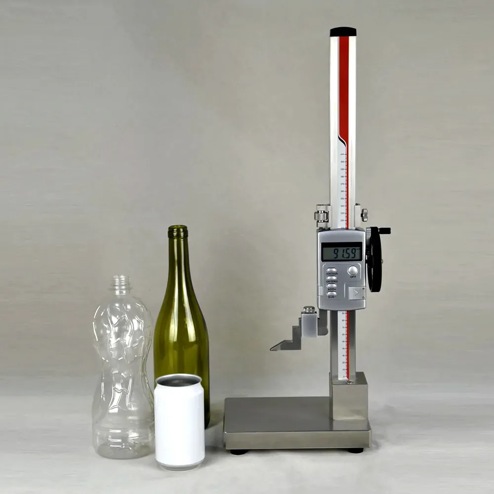 A precision instrument designed for accurately measuring the height of bottles, offering high resolution and accuracy.