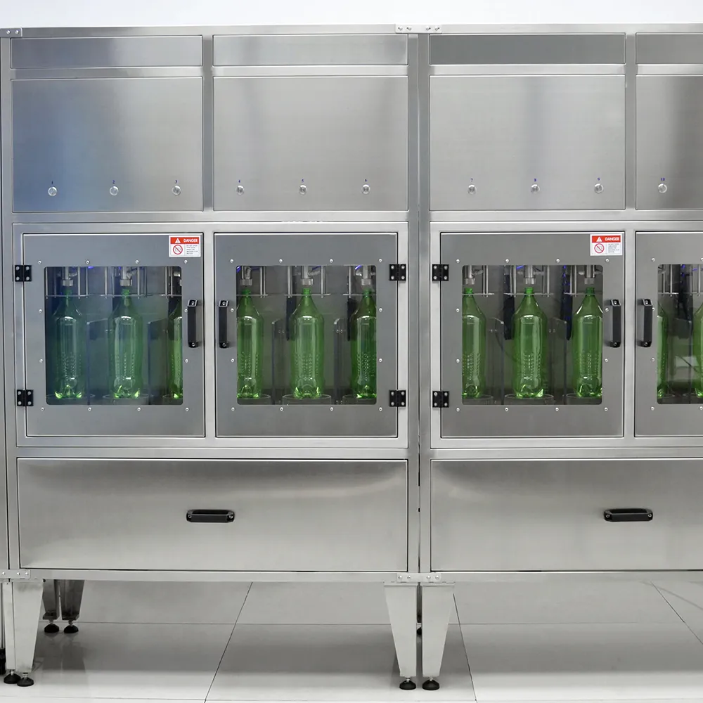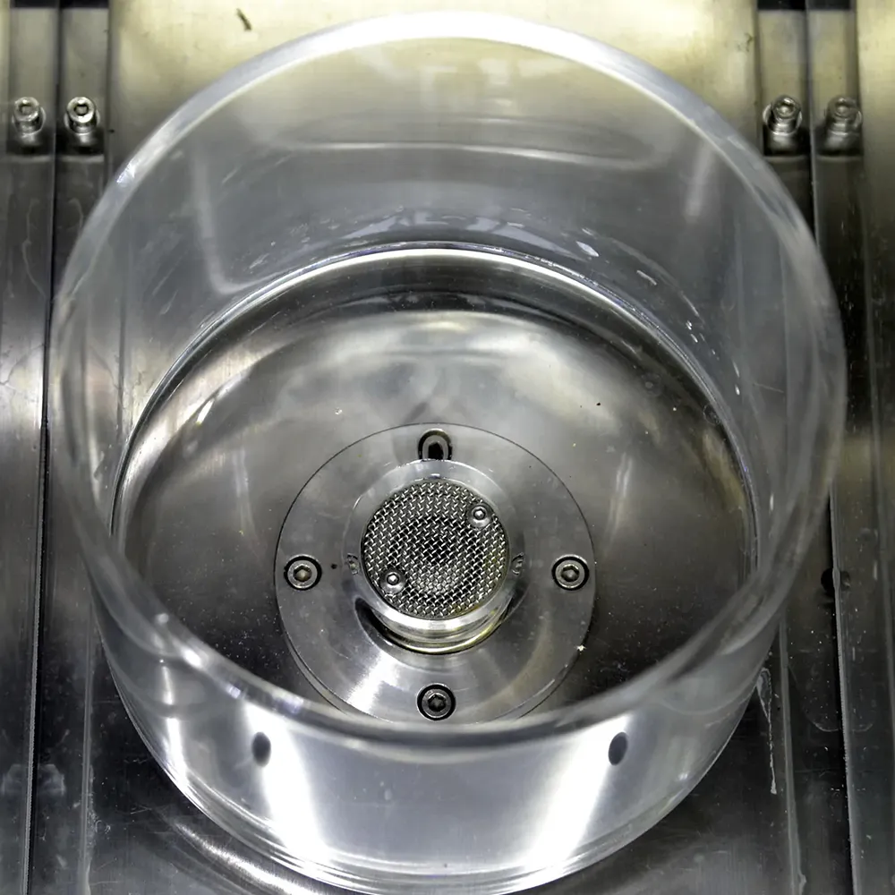 The AT2E’s STC-PLC Stress Crack Tester PLC Model is designed to test the internal stress in bottle base and for determining the stress crack resistance of blow-molded PET carbonated soft drink bottles by measuring the propensity for base cracking upon exposure to an aqueous sodium hydroxide solution under a controlled environment, so that to estimate the long term behavior of bottles. Its PLC control ensures high accuracy and repeatability, with a fully automatic operation.