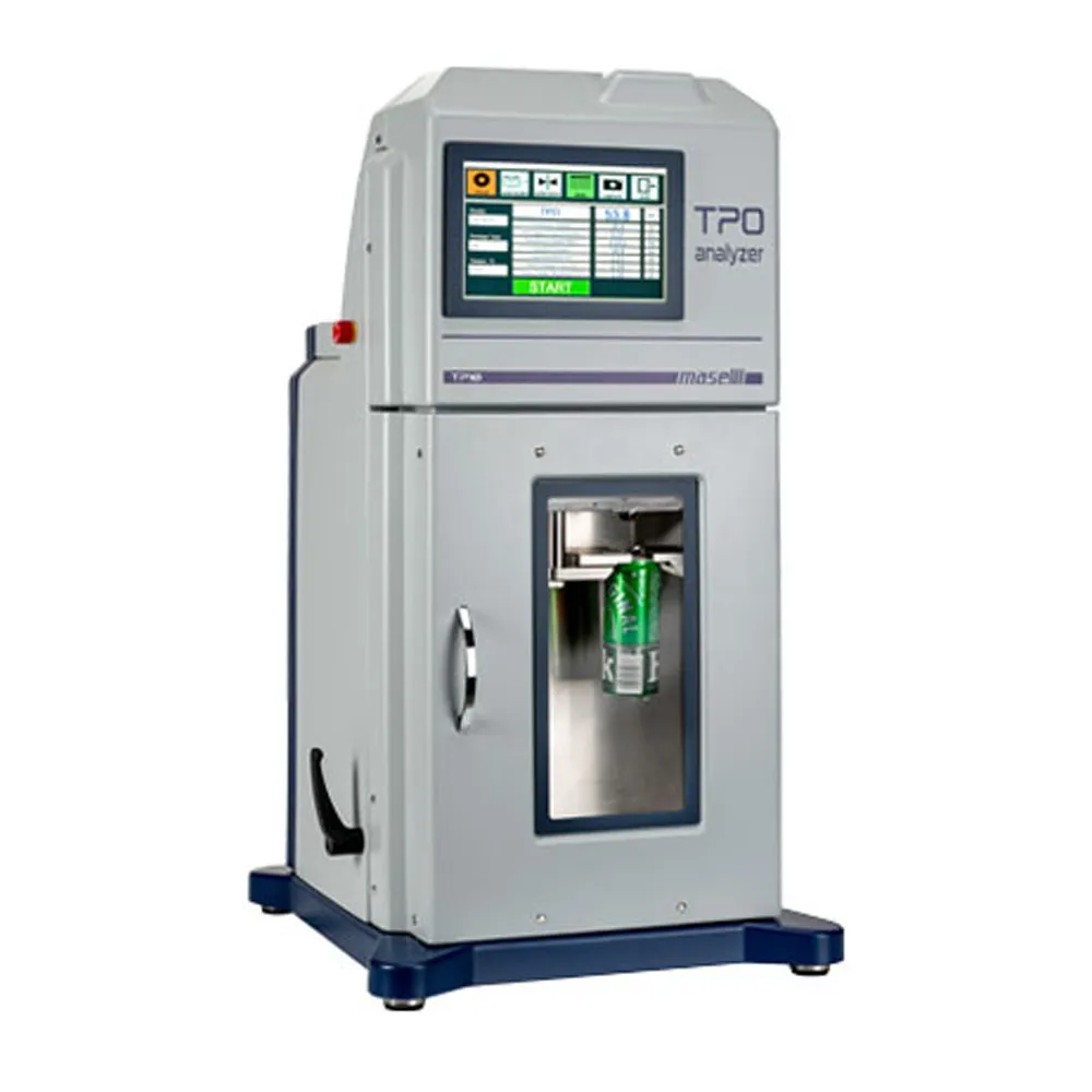 The Maselli TP10 is an innovative Total Package Oxygen Analyzer designed for the beverage industry. The analyzer can be used with a wide variety of package shapes and sizes. Once the package is placed in the TP10 the analyzer automatically pierces the container and measures the headspace volume and O₂ concentration of both the liquid and headspace of the package. The TP10 user interface operates on a web-based software platform making data analysis quick and easy from anywhere.
